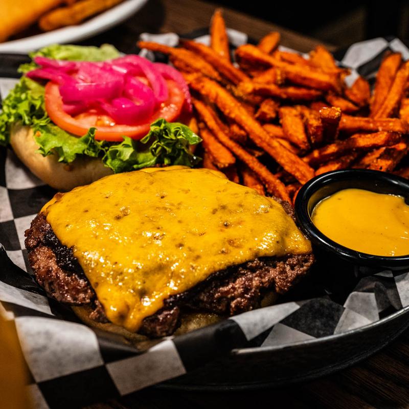 All burgers served with a choice of fries, jojos, garden salad ($1.00), sweet fries ($1.00), or one trip through the salad bar ($3.99)